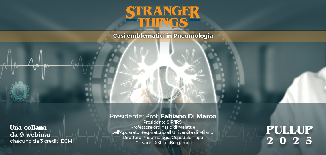 PULL UP – Stranger things: casi emblematici in Pneumologia, è un progetto formativo composto da 9 webinar live, ciascuno da 3 crediti ECM, che ci accompagnerà per tutto l’anno, da marzo a dicembre 2025.